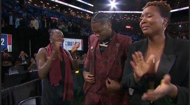 時間回到22年選秀大會,馬瑟林穿了一套定制的紅色西服。