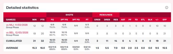 賽后張子宇的表現(xiàn)引發(fā)了全世界的媒體熱議,短短18分43秒,15中10,拿到20分11籃板5失誤,命中率69.6%,張子宇在內(nèi)線就是予取予求的存在。