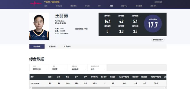 現(xiàn)今33歲,身高1米83,本賽季效力于石家莊女籃,常規(guī)賽場均14.4分5.4助攻4.9籃板。