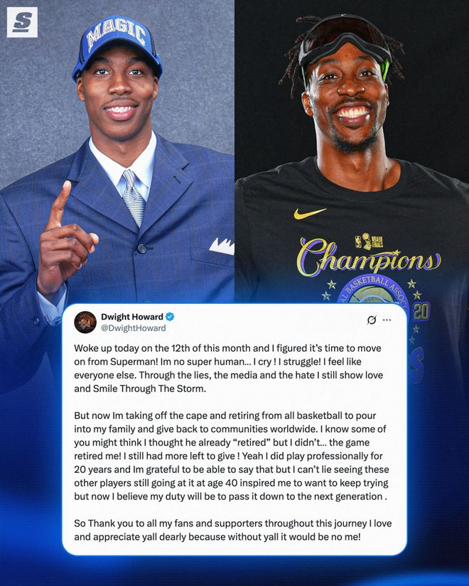 北京時間3月13日,德懷特-霍華德在社媒上發(fā)表長文,正式宣布退役。