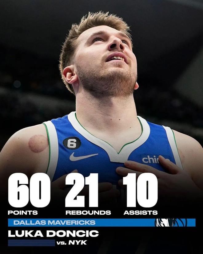 要知道,50+三雙的難度不亞于單場(chǎng)60+甚至70+,NBA歷史一共只發(fā)生17次而已(單場(chǎng)70+則是16次),東契奇生涯只有過(guò)1次,即2022-23賽季,面對(duì)尼克斯的單場(chǎng)60分21籃板10助攻。