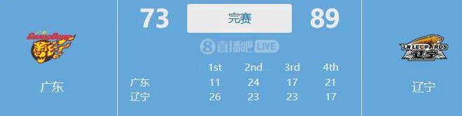 廣東隊全場被遼寧隊打得毫無脾氣,首節(jié)單節(jié)差點未能得分上雙,最終主場73-89慘敗。