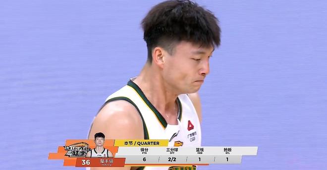末節(jié)決戰(zhàn),面對一個屁的分差,杜導啟用張皓嘉+崔永熙的雙前鋒組合,薩姆納一打五開局強造2+1,再連線焦泊喬籃下強攻制造2罰拿下5分,7分39秒,崔永熙翻身跳投,終于拿到加盟宏遠的第一分,而這也是廣東本土球員拿到的第8分。