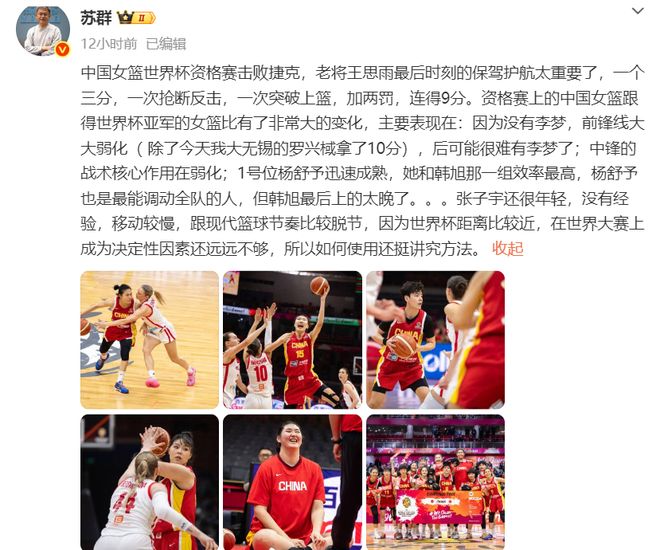 賽后,媒體人蘇群也是發(fā)文中國隊的表現(xiàn),談到張子宇時,指出:“張子宇還很年輕,沒有經(jīng)驗,移動較慢,跟現(xiàn)代籃球節(jié)奏比較脫節(jié),因為世界杯距離比較近,在世界大賽上成為決定性因素還遠(yuǎn)遠(yuǎn)不夠,所以如何使用還挺講究方法”。