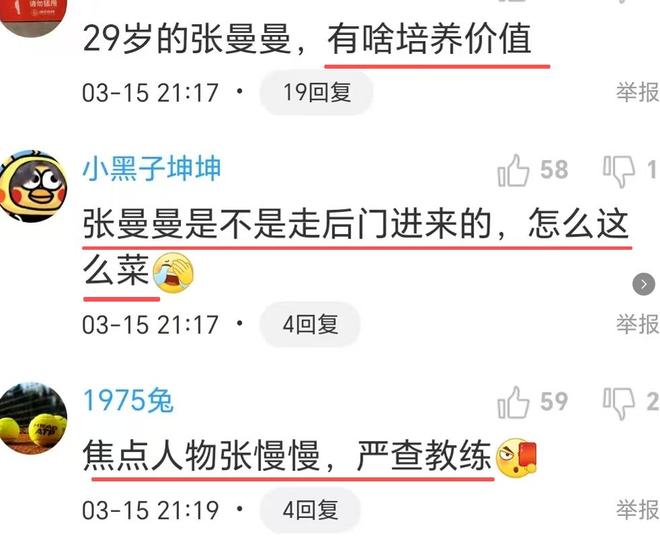 在眾多新人中,表現(xiàn)最糟糕的就是控衛(wèi)張曼曼,繼一場5中1后,昨晚又是5中1,還有3次失誤,沒突破,沒籃子,只有失誤和0罰球。這個張曼曼真是看了讓人崩潰,場場拉稀,隊友失誤在那兒一臉不爽,也不積極回防,自己辣眼失誤,一臉無辜,誰給的自信?球迷說,“我一個外行人,覺得張慢慢運(yùn)球的動作都不熟練,也沒藍(lán),防守搏命搶斷,這種后衛(wèi)怎么出去打強(qiáng)隊?”,“這場比賽差點(diǎn)給張曼曼毀了”。