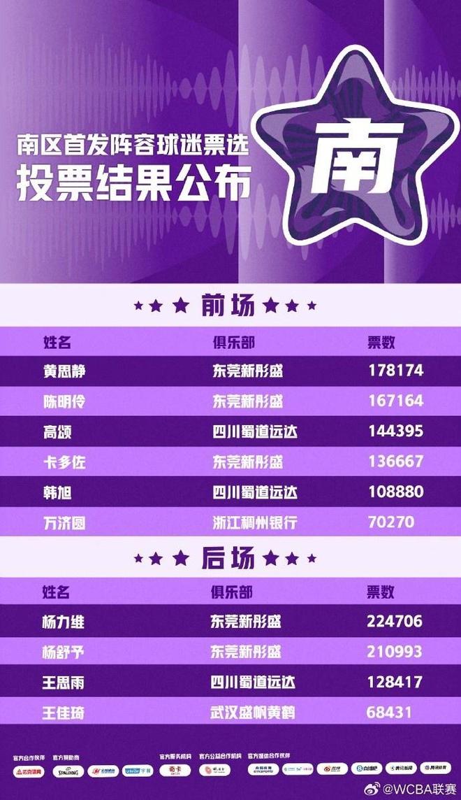 - WCBA官宣全明星首發(fā):楊力維總票王武桐桐北區(qū)票王 廣東4人入選
