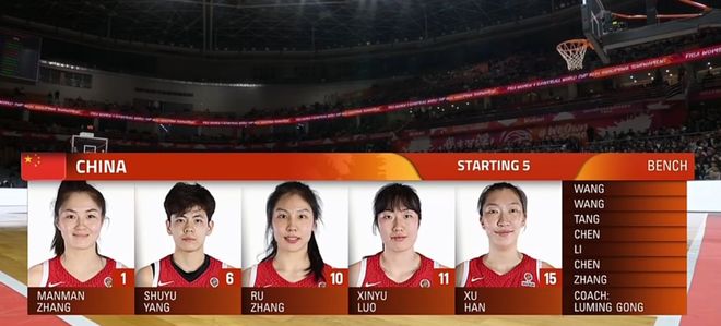 中國女籃首發(fā):張曼曼、楊舒予、張茹、羅欣棫、韓旭。