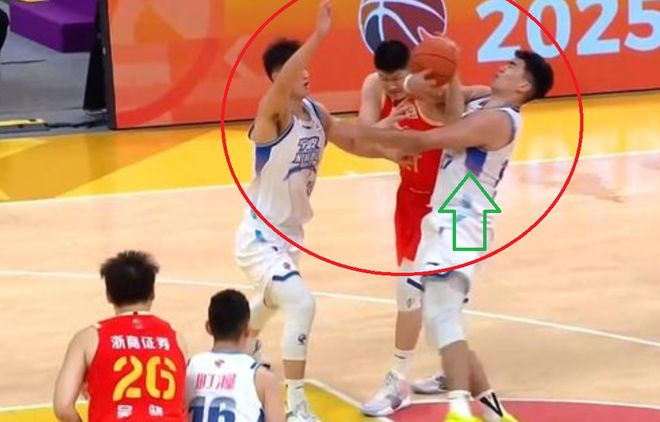 廣廈隊(duì)球員胡金秋,在接到隊(duì)友的傳球,剛想要發(fā)動(dòng)進(jìn)攻,然而,就在這個(gè)時(shí)候,寧波隊(duì)兩名球員對胡金秋進(jìn)行包夾,我們可以看到,寧波隊(duì)中鋒魯吐布拉,從胡金秋的身后沖過來,二話不說,就與胡金秋糾纏在一起。