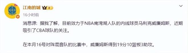 本文標簽:湖人 內(nèi)線 悍將 nba 廣東男籃 新疆男籃 本土球員 莫·威廉姆斯