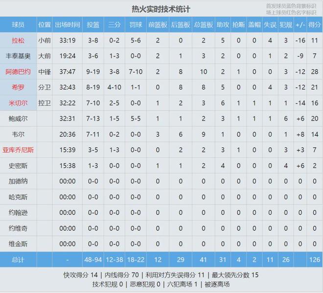 全場(chǎng)結(jié)束,湖人134-126擊敗熱火,完成15分大逆轉(zhuǎn)!東契奇怒砍60分7板3助5斷,背靠背兩場(chǎng)一共轟下100分。詹姆斯19分15板10助、里夫斯18分5板4助。熱火這邊,阿德巴約28分10板、希羅21分8板5助、鮑威爾20分2板3助。
