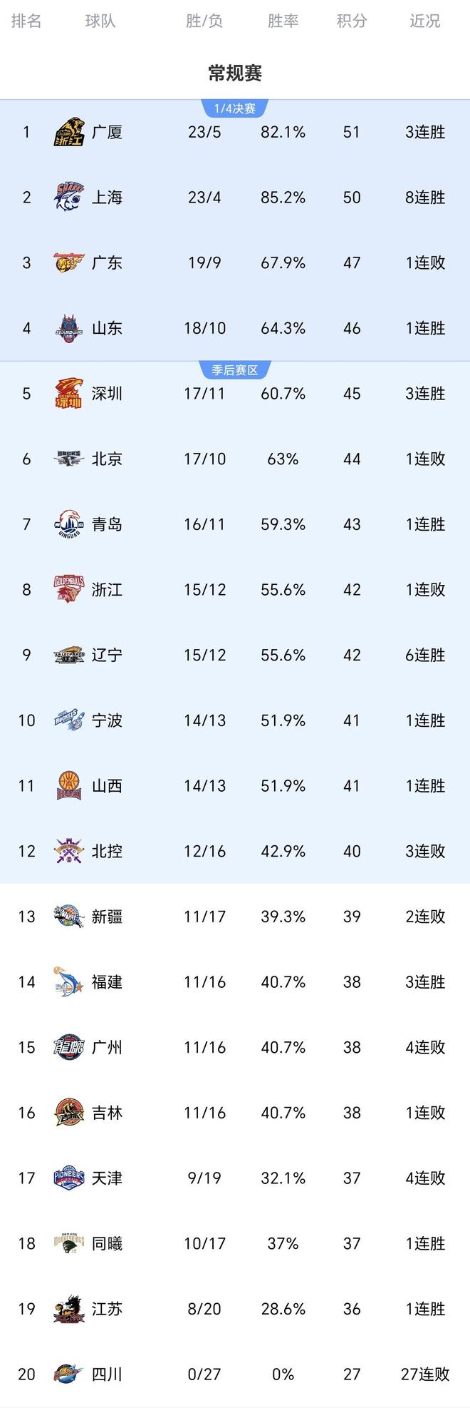 - CBA積分榜一夜大變!隨著廣東遭絕殺 山東+深圳大勝 最新排名如下