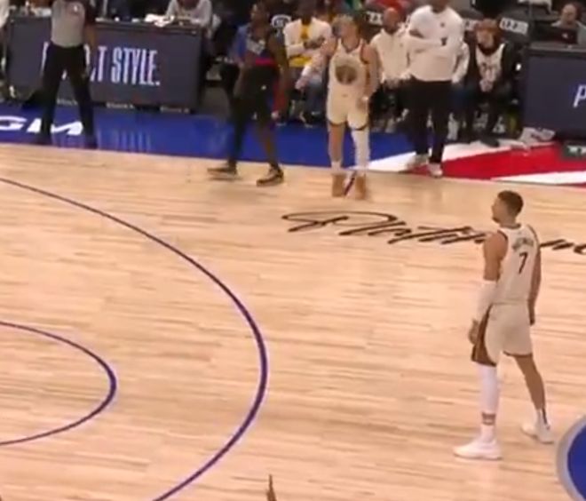 除了傷退以外波神在場(chǎng)其實(shí)還有一個(gè)尷尬鏡頭,第一節(jié)最后時(shí)刻他在弧頂和波杰姆斯基配合完伸手要球,但后來直接被缽缽雞無視,后者寧愿頂著對(duì)手干拔壓哨都不肯傳位置更好的他。