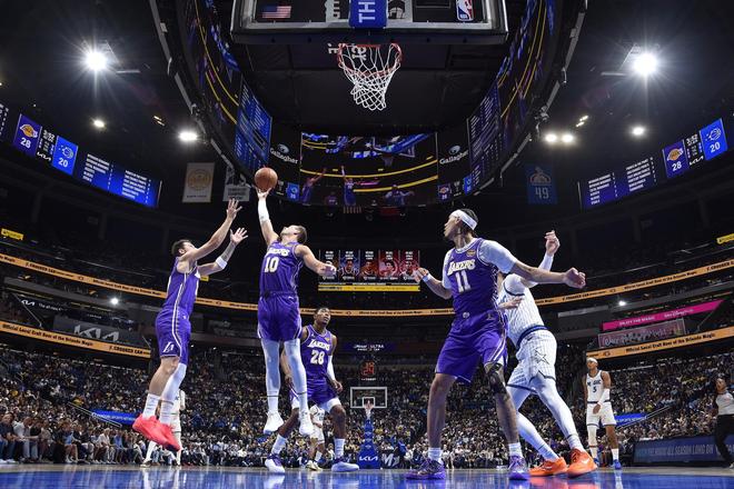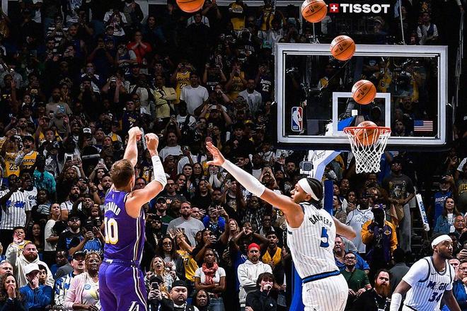 上半場東契奇早早砍下24分,這是其本賽季第38次半場拿到20+,成功升至湖人隊史第四。
