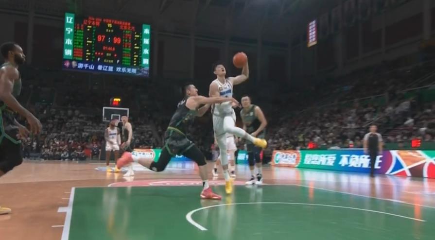 曾凡博起飛欲扣 付豪兇狠犯規(guī)將其拽倒 裁判回看后普通犯規(guī)