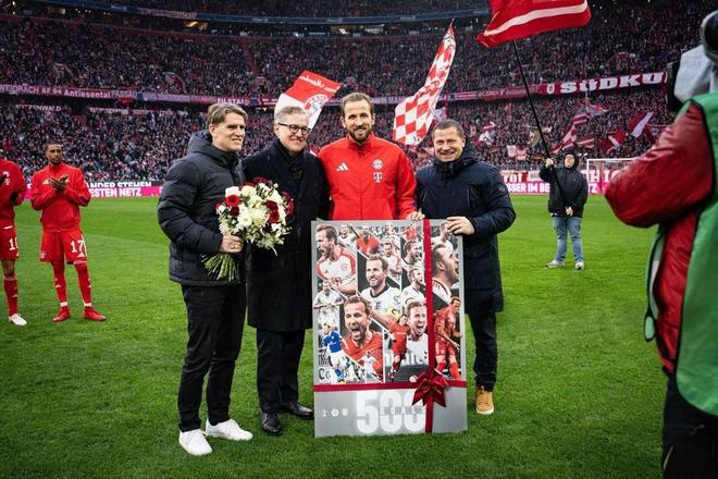 此役主場對(duì)陣法蘭克福,拜仁慕尼黑俱樂部賽前為達(dá)成這一里程碑的凱恩送上祝賀和禮物。