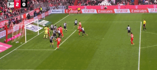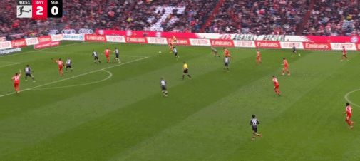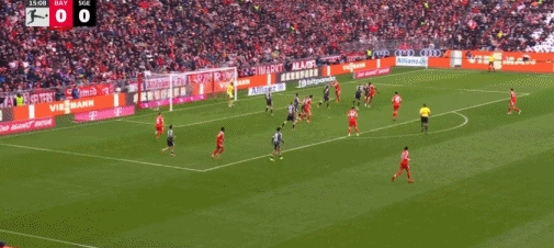 第16分鐘,帕夫洛維奇抽射,桑托斯撲救失誤,拜仁1-0法蘭克福