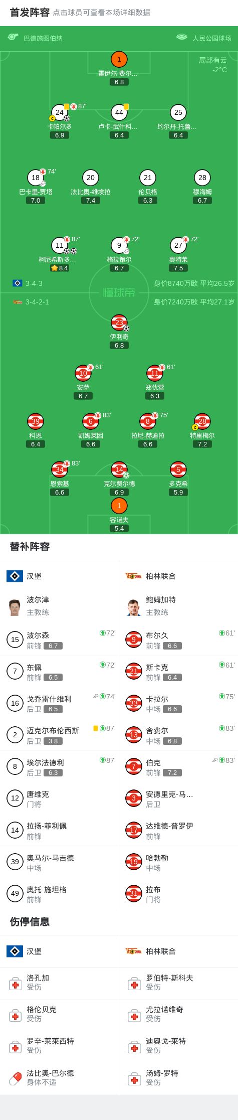 漢堡3-2逆轉(zhuǎn)柏林聯(lián)合,柯尼希斯多費爾兩球,卡帕爾多建功