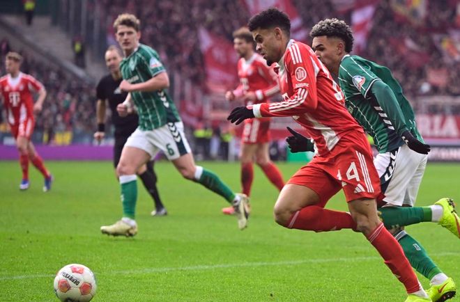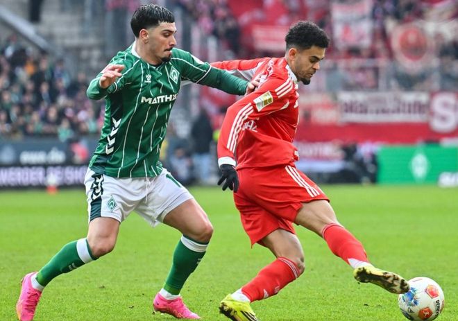第28分鐘,呂嫩鏟人犯規(guī),被出示黃牌。隨后,迪亞斯突入禁區(qū)左側(cè),小角度低射。門將把球擋了出去。第37分鐘,尼克拉斯-施塔克犯規(guī),被出示黃牌。3分鐘后,阿古在禁區(qū)左側(cè)內(nèi)切兜射遠(yuǎn)角,踢偏了。半場(chǎng)結(jié)束,拜仁2-0領(lǐng)先云達(dá)不萊梅。
