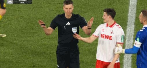 第90+5分鐘,科隆球員投訴揚-科托禁區(qū)內手球,裁判沒有表示