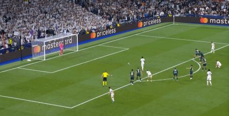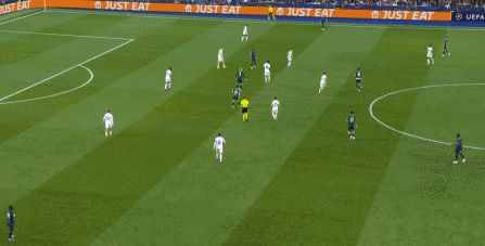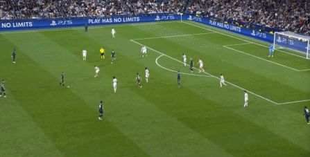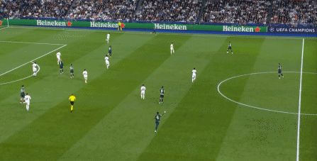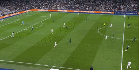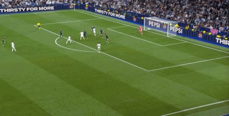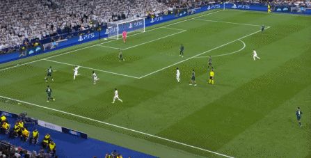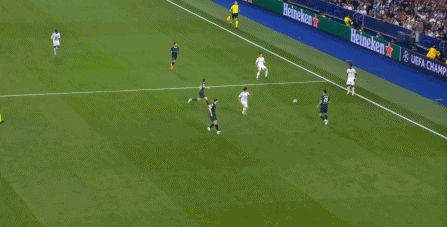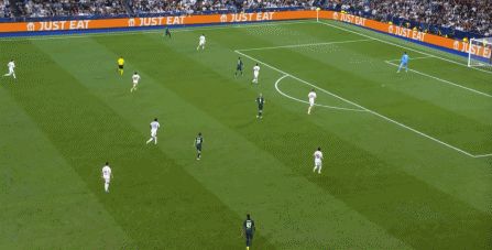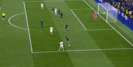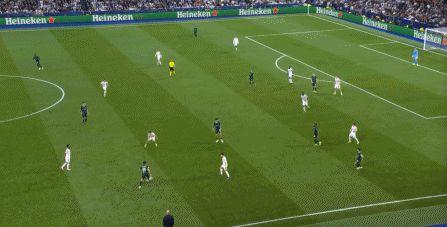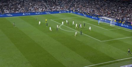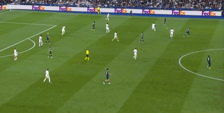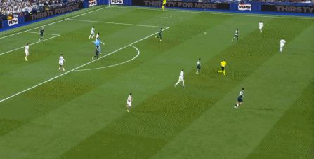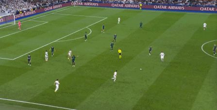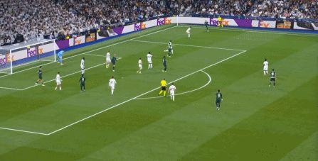 所以在下半場,皇馬的表現(xiàn)依然穩(wěn)健,還是通過人數(shù)足夠的防守來構筑基礎,在此之上進行次數(shù)有限,但威脅不小的反擊,效果依然不錯: