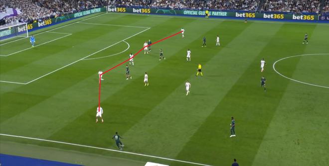 于是,通過壓縮空間來限制住曼城的進攻效率之后,皇馬的要緊任務就變成了打出反擊,尤其是要在這種無中鋒的思路下打出反擊。