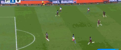 第23分鐘,邁克爾布倫西斯倒三角傳球,法比奧-維埃拉破門(mén),漢堡1-0
