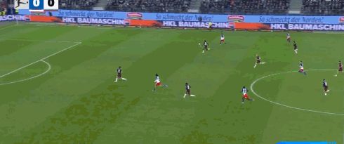 第36分鐘,巴庫(kù)頭球擺渡,羅慕洛腳后跟破門(mén),萊比錫1-1