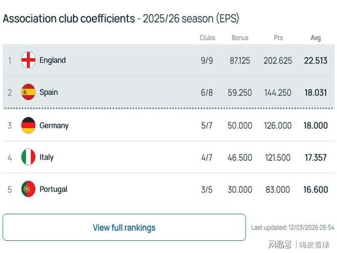 從目前的積分來看,英超雖然優(yōu)勢減少,但是領(lǐng)先幅度還是很大的,主要得益于本賽季增加了新規(guī)則。歐洲三大杯的聯(lián)賽階段,修改為按照排名來計(jì)算獎勵積分,而且權(quán)重得到大幅提高。