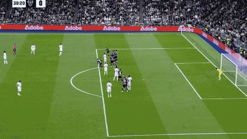 第39分鐘,皇馬獲得任意球,維尼修斯一撥,巴爾韋德標(biāo)志性起腳怒射,門將將球撲出,皮球來到呂迪格身前,德國(guó)后衛(wèi)不停球撩射,打破僵局。