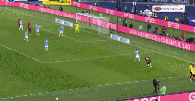 第36分鐘,馬爾蒂尼突入禁區(qū)前低射,邁尼昂沒(méi)收皮球