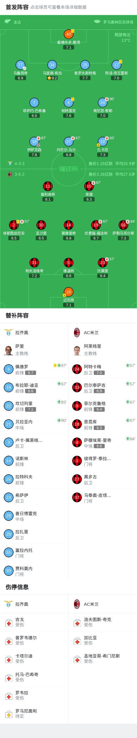 北京時(shí)間3月16日意大利足球甲級(jí)聯(lián)賽第29輪,拉齊奧主場(chǎng)對(duì)陣AC米蘭。上半場(chǎng)伊薩克森破門(mén),泰勒中框,下半場(chǎng)普利希奇造險(xiǎn),阿特卡梅破門(mén)被吹手球,薩里補(bǔ)時(shí)染紅最終比分拉齊奧1-0 AC米蘭。