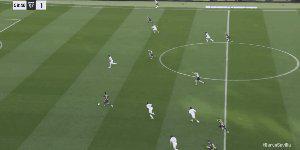 上半場(chǎng)補(bǔ)時(shí)第3分鐘,胡安盧右路傳中,奧索打遠(yuǎn)角破門,塞維利亞扳回1球。