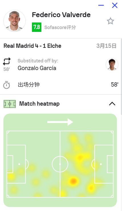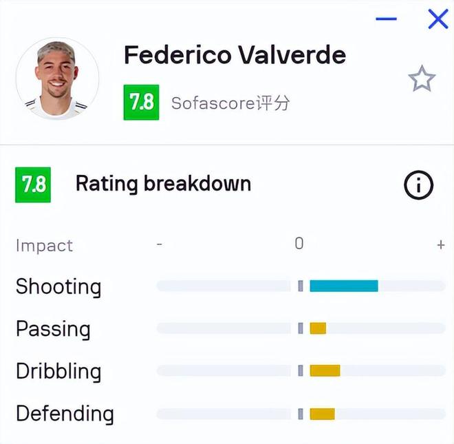 本場比賽,巴爾韋德在第44分鐘打進一球,幫助皇馬擴大領先優(yōu)勢。但進球只是他全場出色發(fā)揮的一部分。