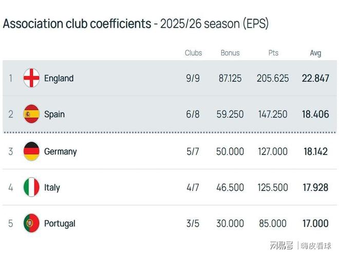 除了英超之外,西甲、德甲和意甲分別排在第二名到第四名,首尾差距不到0.5分,只要比其他聯(lián)賽多一隊(duì)晉級下一個階段,就能抹平這個差距。誰能獲得另外一個歐冠獎勵名額,還是有些懸念的,三大聯(lián)賽將會為前兩名展開激烈的爭奪。