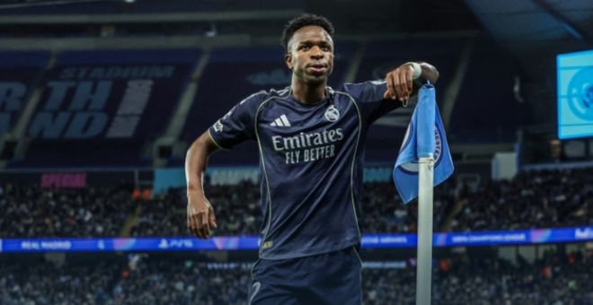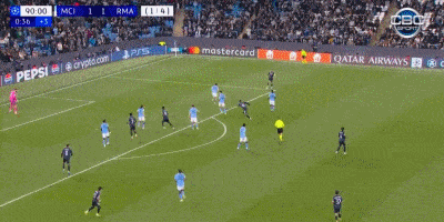 到第93分鐘,維尼修斯自己在門前完成了包抄破門,就此皇馬2-1曼城,比賽完結(jié)。