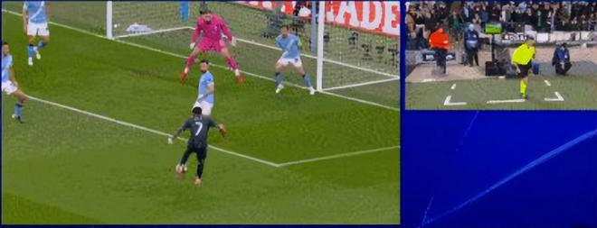 第21分鐘,維尼修斯的補(bǔ)射導(dǎo)致貝爾納多在門前用手臂擋球,就此,紅點(diǎn)套餐出現(xiàn),曼城少打一人。