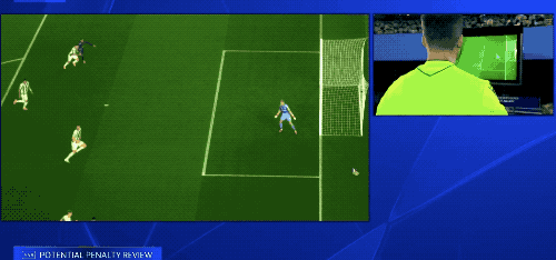 VAR介入,特里皮爾的犯規(guī)清晰可見,裁判吹罰點球,并給了特里皮爾一張黃牌。
