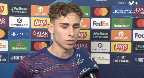 在巴薩主場(chǎng)7-2大勝紐卡斯?fàn)柕臍W冠1/8決賽中,費(fèi)爾明為球隊(duì)打入第四球,賽后他接受了Movistar+的采訪。