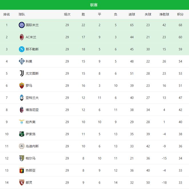 - 本賽季意甲20隊意大利球員出場時間排行榜:科莫1分鐘墊底
