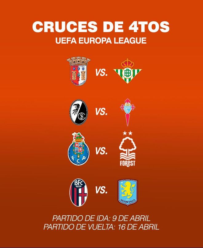 北京時間3月20日,歐聯(lián)杯1/8決賽次回合的較量已經(jīng)全部結束,本賽季的歐聯(lián)8強也正式出爐。分別是布拉加、貝蒂斯、弗賴堡、塞爾塔、波爾圖、諾丁漢森林、博洛尼亞、阿斯頓維拉