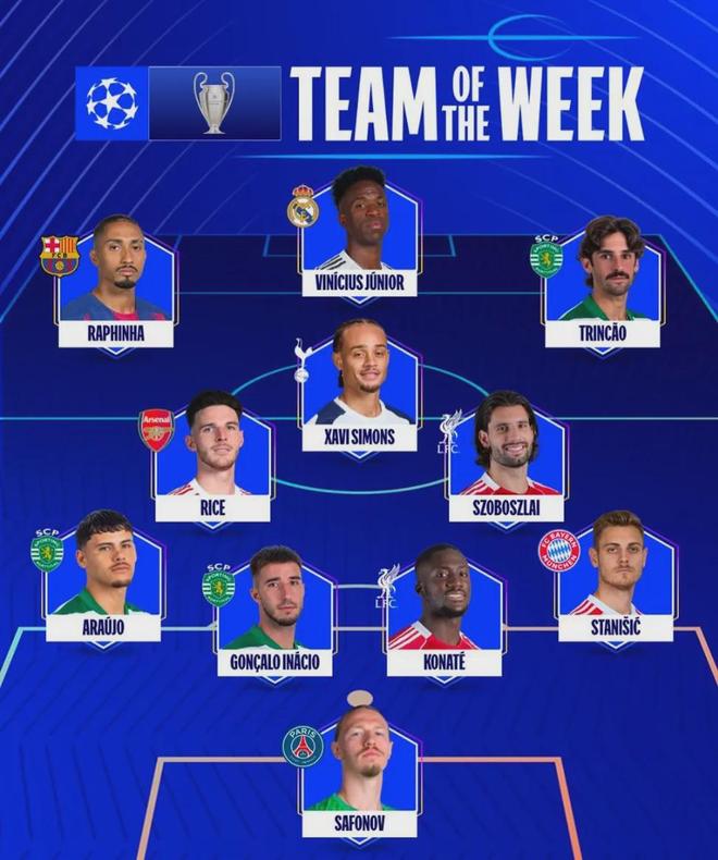 官方:賴斯入選了歐冠八分之一決賽次回合最佳陣容。