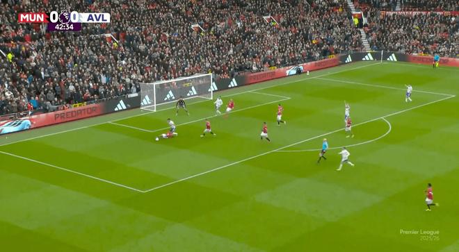 在曼聯(lián)客場3-1擊敗阿斯頓維拉的比賽中,約羅全方位展現(xiàn)了身為頂級后衛(wèi)的亮眼特質(zhì)。上半場臨近尾聲階段,維拉在中場中路完成斷球反擊,瞬間打破曼聯(lián)中場控球節(jié)奏,迫使約羅與搭檔哈里-馬奎爾同步回撤落位。