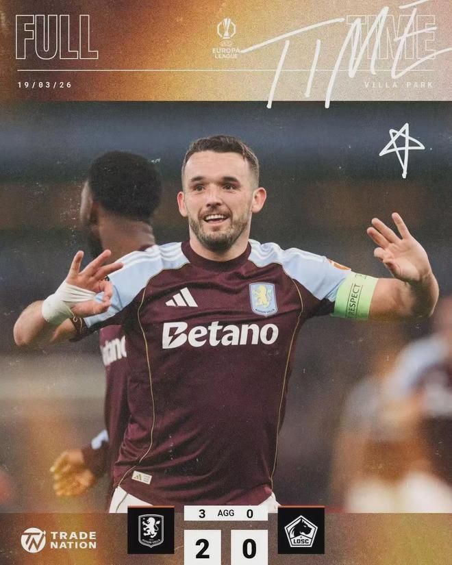 - 2026年03月20日 進(jìn)歐聯(lián)八強!維拉2-0總比分3-0里爾 麥金、貝利破門桑喬送助攻
