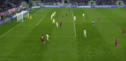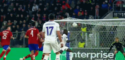 第22分鐘,中日德蘭左路傳中造險,拉涅利頭球解圍
