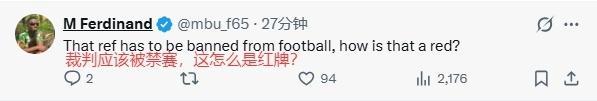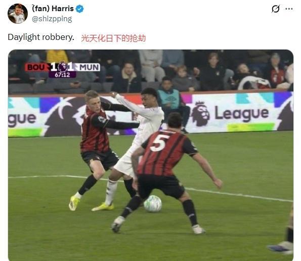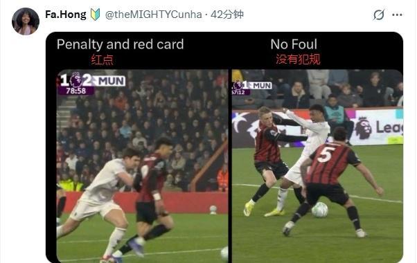 “同樣的犯規(guī),一個(gè)是紅牌+點(diǎn)球,一個(gè)啥都沒有!”:“光天化日下,曼聯(lián)被搶劫!”:“應(yīng)該對主裁處罰,甚至禁賽!”