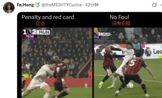 同樣是拉人,一個連犯規(guī)都不算,一個直接紅點(diǎn)套餐。曼聯(lián)不僅被罰下一人,還眼睜睜看著比分被扳成2-2。少打一人+丟分,雙重打擊。