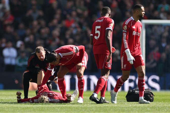 利物浦在3月遭遇的傷病情況同樣不樂觀,阿利松和薩拉赫都因傷缺席本場比賽,埃基蒂克又在此役開場便傷退。