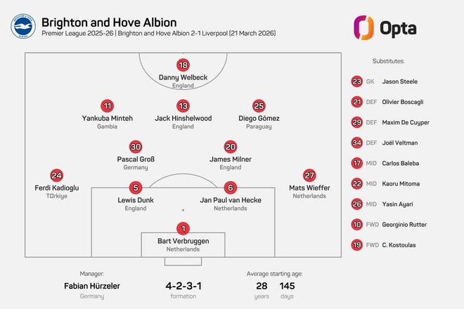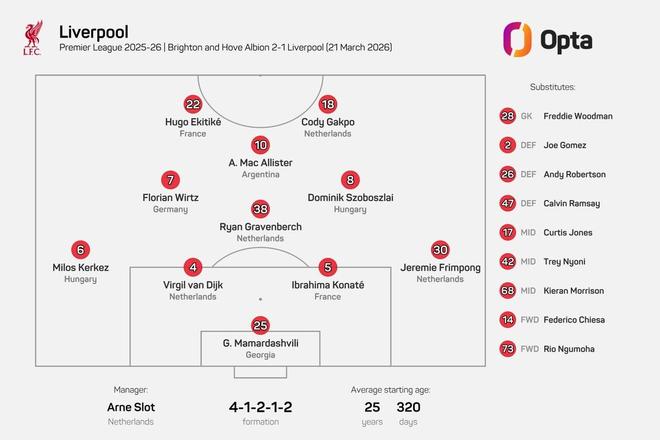 - 2026年03月21日 3輪不勝!利物浦1-2客負(fù)布萊頓 先賽僅領(lǐng)先第六1分 35歲黑貝雙響