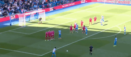第14分鐘,維爾貝克力壓科納特頭球破門,利物浦0-1落后布萊頓!