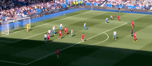 第21分鐘,麥卡利斯特頭球,球被費(fèi)布魯亨撲出